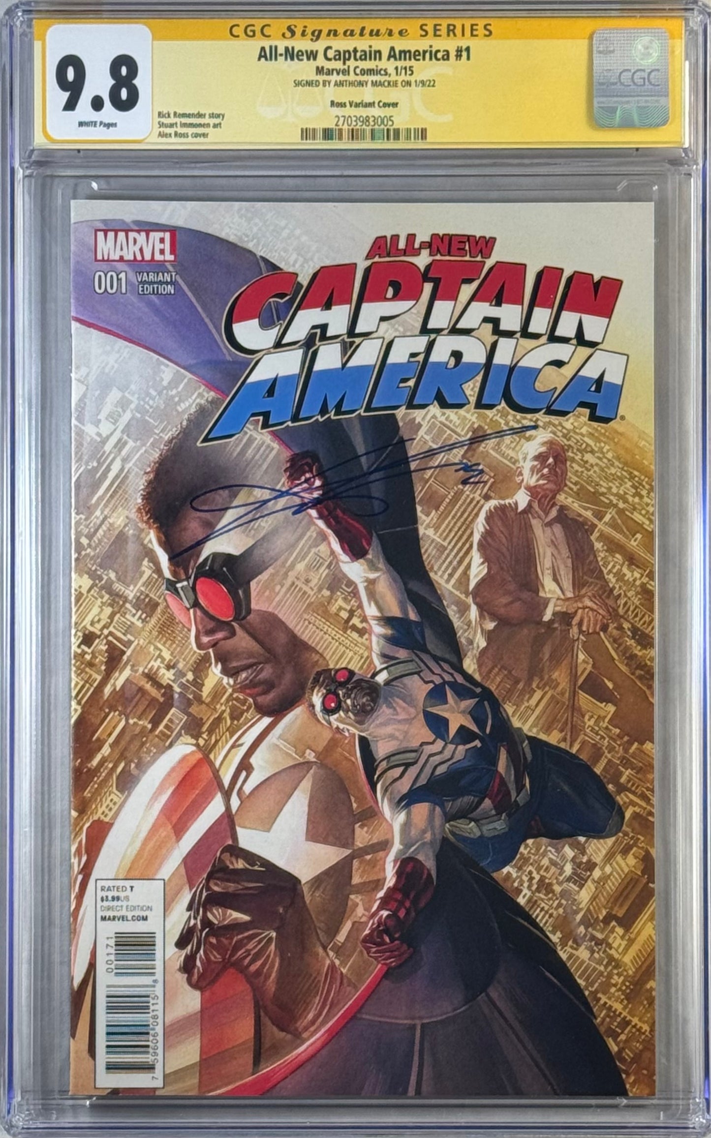 ALL-NEW CAPTAIN AMERICA #1 ROSS VARIANT COVER CGC SS 9.8 SIGNED BY ANTHONY MACKIE