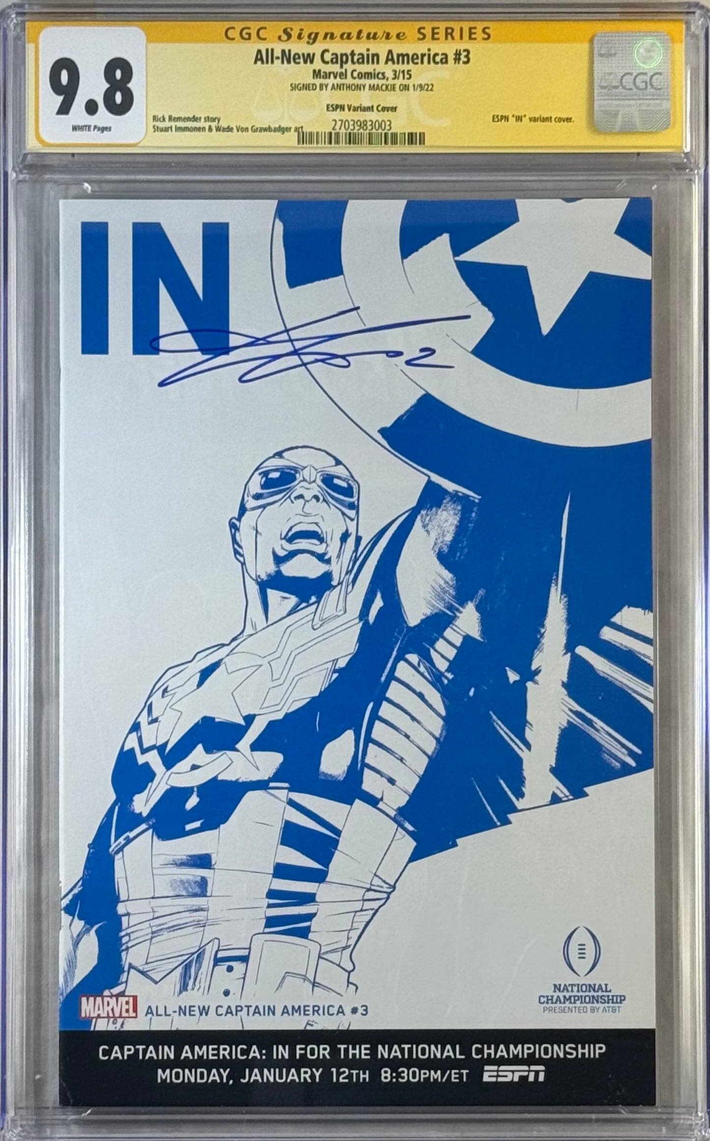 ALL-NEW CAPTAIN AMERICA #3 ROSS VARIANT COVER CGC SS 9.8 SIGNED BY ANTHONY MACKIE