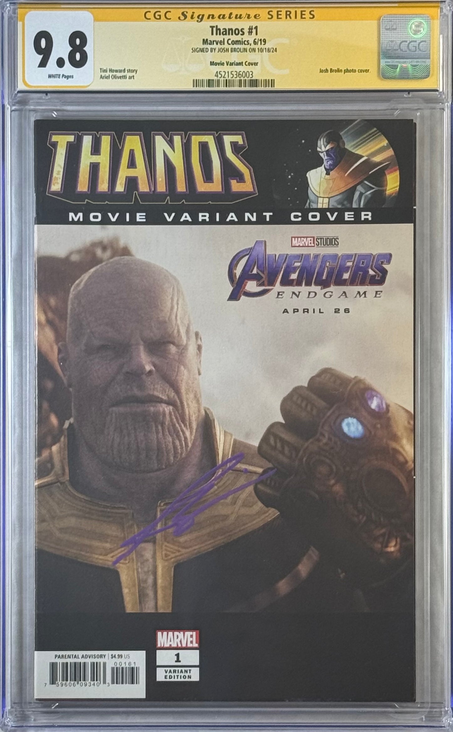 THANOS #1 MOVIE VARIANT COVER CGC SS 9.8 SIGNED BY JOSH BROLIN