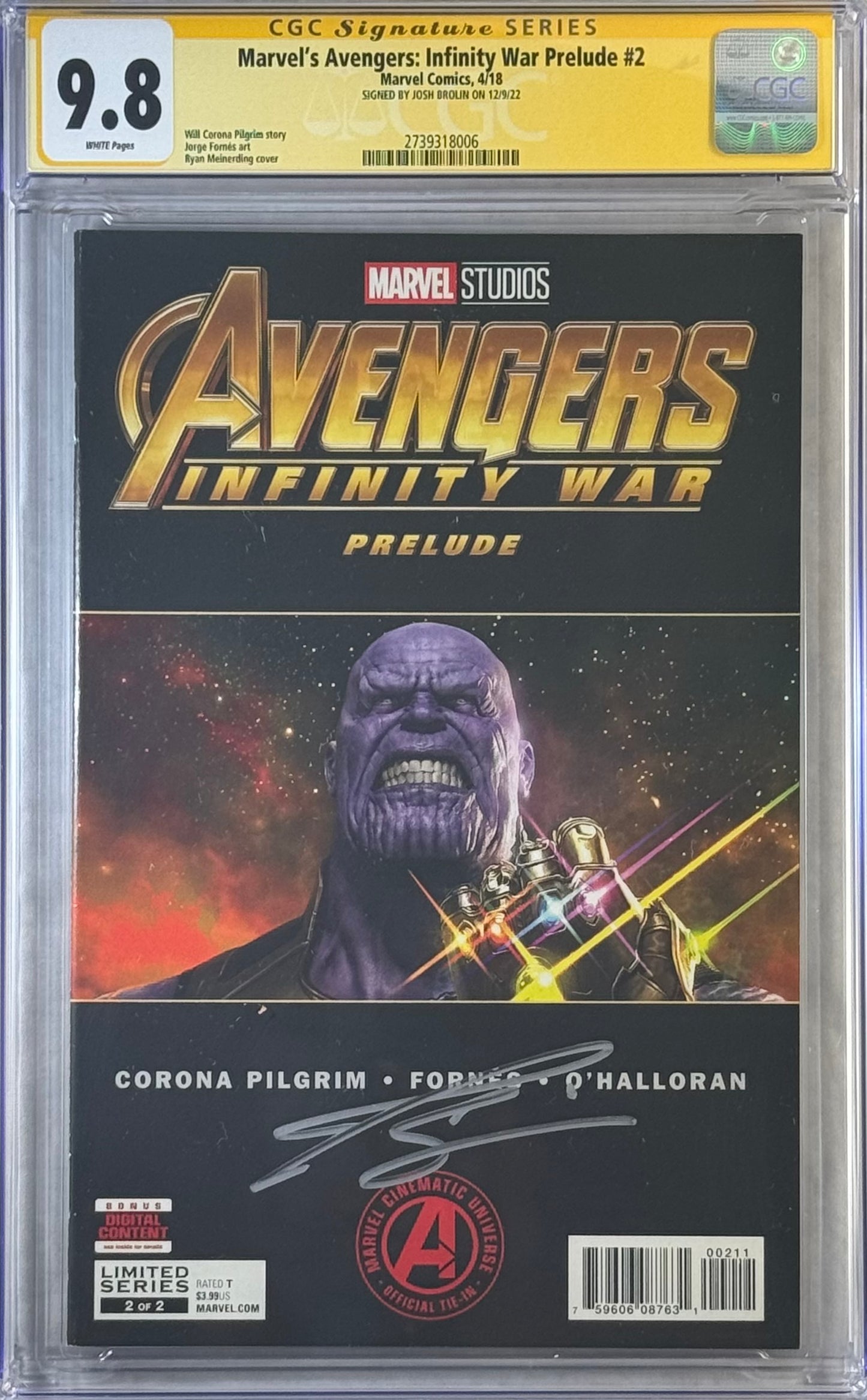 MARVEL’S AVENGERS: INFINITY WAR PRELUDE #2 CGC SS 9.8 SIGNED BY JOSH BROLIN